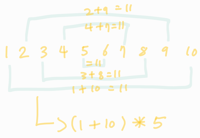 (1 + 9) * ((9-1) / 2) + ((1 + 9) /2)