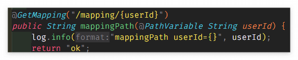 @****Mapping("/{param๋ช }")์ ํ์ ReturnType ๋ฉ์๋๋ช (@PathVariable ("param๋ช ") Type ๋ณ์๋ช ) {