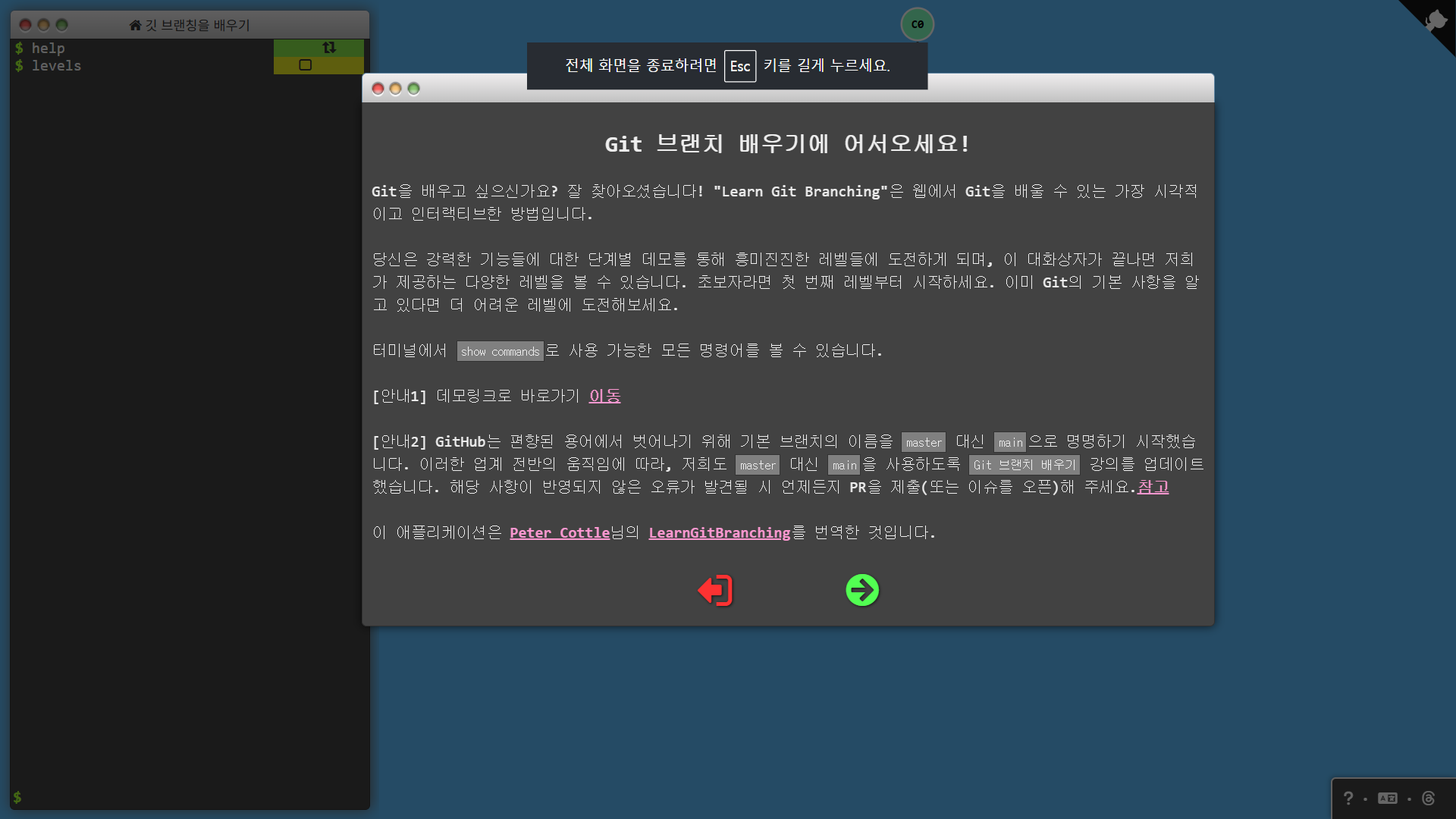 ๊ทธ๋ด ๋ ๊ฐ์์ผ๋ก ํ ์คํธํ ์ ์๋ ์ฌ์ดํธ์ ๋๋ค. - ์ Git Book ๊ณต์ ๋ฌธ์๋ฅผ ๋ณด๋ฉด์ ์ด ์ฌ์ดํธ์์ ์ฐ์ตํ๋ฉด ๋ง ํธํ๊ฒ ๋ช ๋ น์ด๋ฅผ ์คํํ ์ ์์ต๋๋ค.