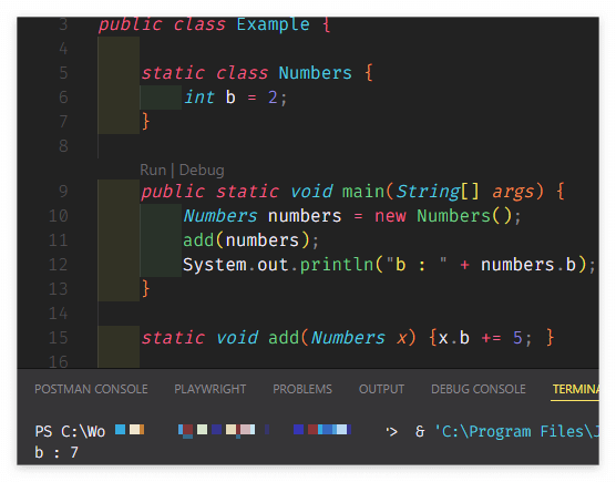- ์ฐธ์กฐํ ๋ฐ์ดํฐ์ ์ฃผ์๊ฐ ์ ๋ฌ(Numbers x) ๋์๊ธฐ ๋๋ฌธ์ ๋ณ์ b์ ๊ฐ์ด ๋ณ๊ฒฝ๋๋ค.