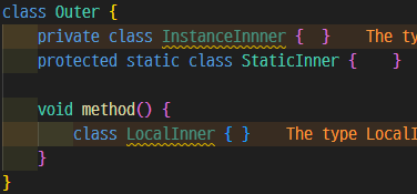 지역 내부 클래스는 해당 메서드 안에서만 사용할 수 있습니다.