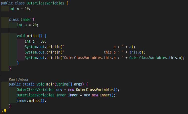 - 외부 클래스 안 main에서는 내부클래스를 바로 호출가능.