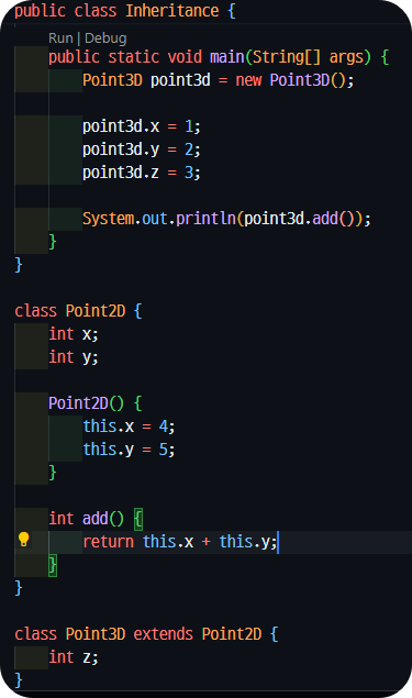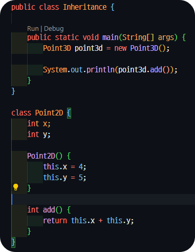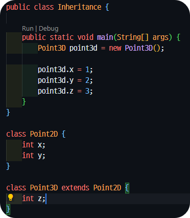 3D 좌표를 표기하는 Point3D라는 class가 있을 경우에 - Point2D를 상속 받은 Point3D 클래스에서 x,y,z사용할 수 있습니다.