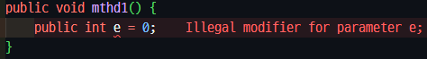 - 메소드 안 지역 변수에서는 사용 못 합니다.