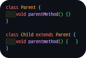 | @Override | 컴파일러에게 오버라이딩하는 메서드라는 것을 알린다. |