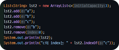 - 실제로 lst1에 요소가 한개가 들었고 나머지 용량은 필요없을 때 trimToSize()를 사용합니다.