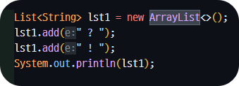 → List lst1 = new ArrayList<>(); - 용량지정 생성