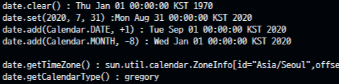 : 1970년 1월 00:00:00시로 초기화되는 걸 볼 수 있다. - date.set(2020, 7, 31)