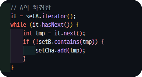 ※ 단순히 집합을 구한다면 메서드를 사용하면 됩니다. 만약 특정 부분 값을 집합에 포함하거나 제외해야 한다면 iterator를 이용해 조건을 추가하면 됩니다.