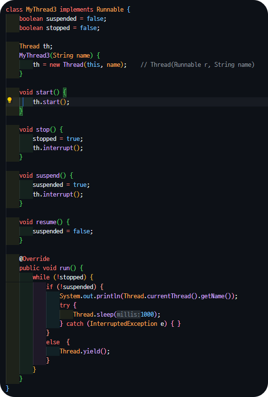 - yield()와 interrupt()를 적절히 사용하면, 응답성과 효율을 높일 수 있다.