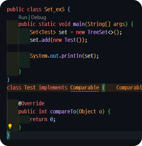 - new TreeSet(Comparator comp) 가 원래는 필수있데 만약 없다면, comparable의 compareTo()를 정렬기준으로 한다.