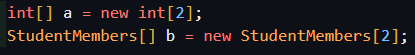여기 배열의 타입으로 사용할 StudentMembers 클래스가 있습니다. String과 int가 변수로 선언되어 있습니다.