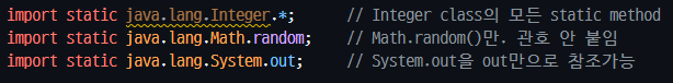 import static java.lang.System.out; // System.out을 out만으로 참조가능