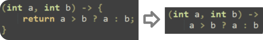 - ๋จ, ํ๋๋ฟ์ธ ๊ทธ ๋ฌธ์ฅ์ด return์ผ ๊ฒฝ์ฐ { }์๋ต๋ถ๊ฐ.