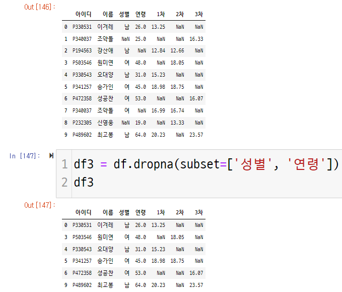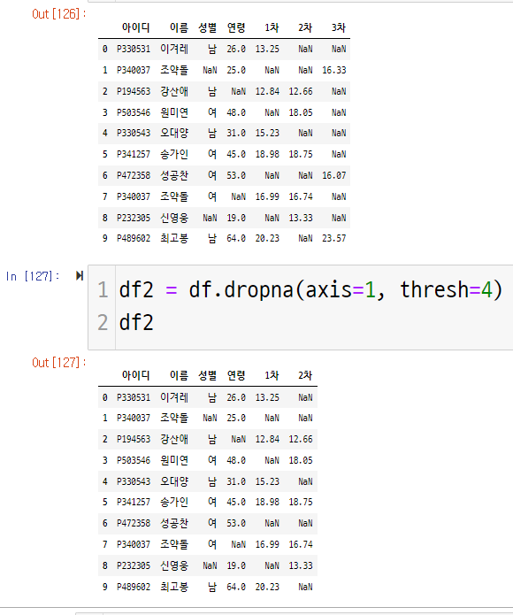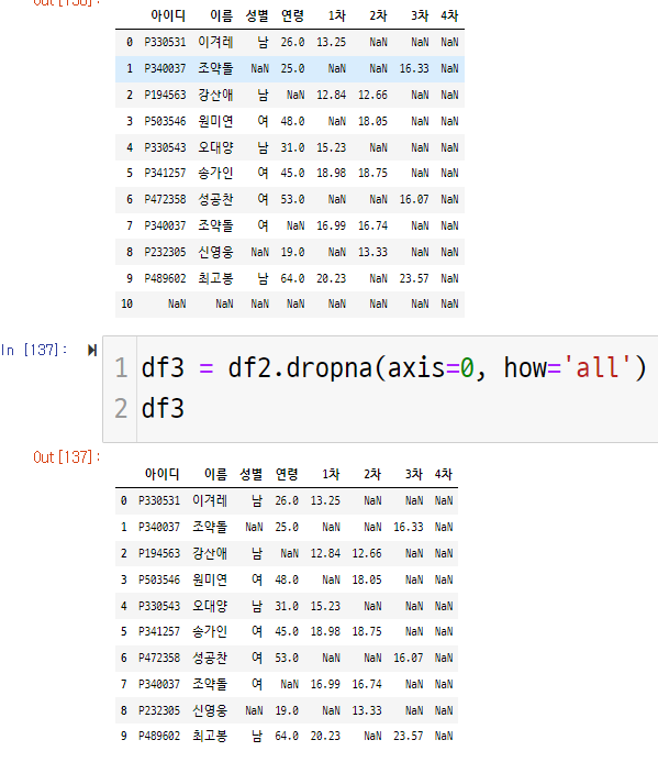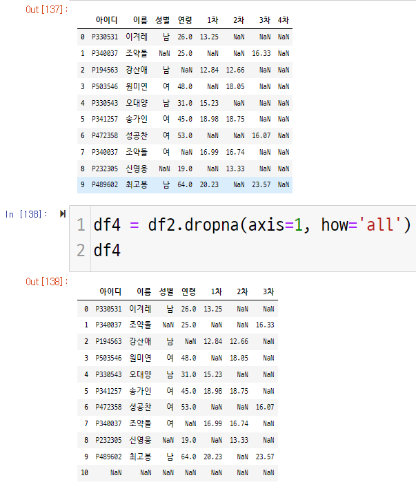 → ํ/์ด์ ๊ฐ์ด ๋ชจ๋ ๊ฒฐ์ธก์น์ผ ๊ฒฝ์ฐ ํด๋น ํ/์ด ์ญ์ .