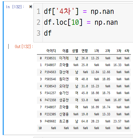 ๊ฐ์ {numpy.nan} ๊ณผ ๊ฐ์ด ๋ฃ์ด์ผ ๊ฒฐ์ธก์น๊ฐ ์ ๋ ฅ๋๋ค.