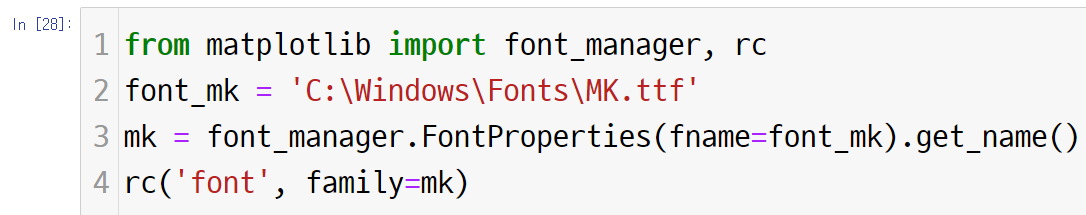 - Matplotlib ๋ผ์ด๋ธ๋ฌ๋ฆฌ๋ ํ๊ธ์ ์ง์ํ์ง ์๋๋ค.