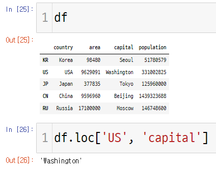 df.loc['๋ ์ด๋ธ๋ช ', '์ปฌ๋ผ๋ช '] :