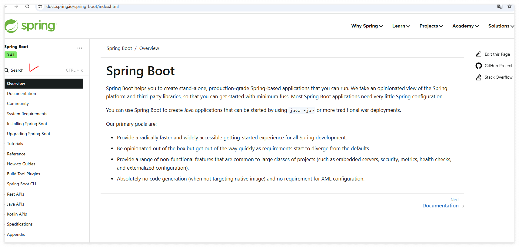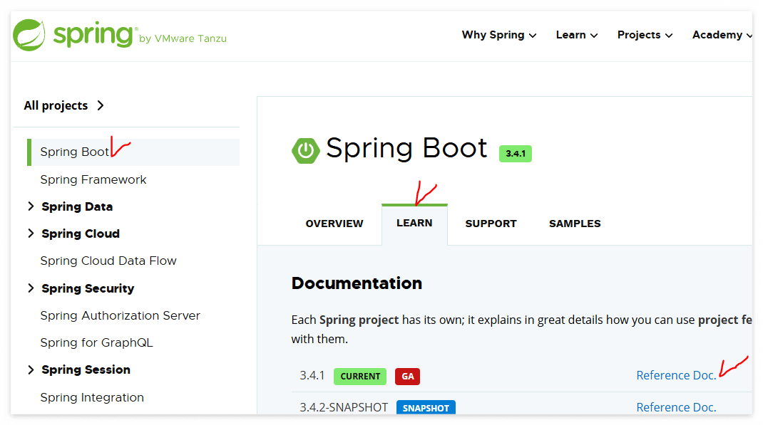- ์ผ์ชฝ ๋ฉ๋ด Spring Boot ํด๋ฆญ Learn ํญ ํด๋ฆญ.