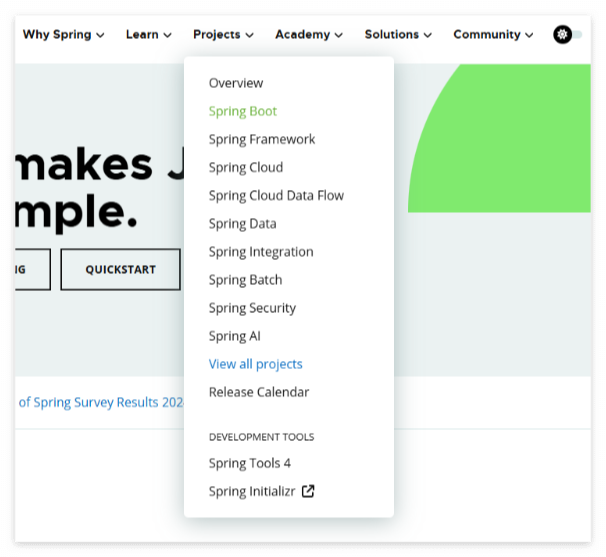 - ์๋จ ๋ฉ๋ด์ Projects-Spring Boot ํด๋ฆญ.