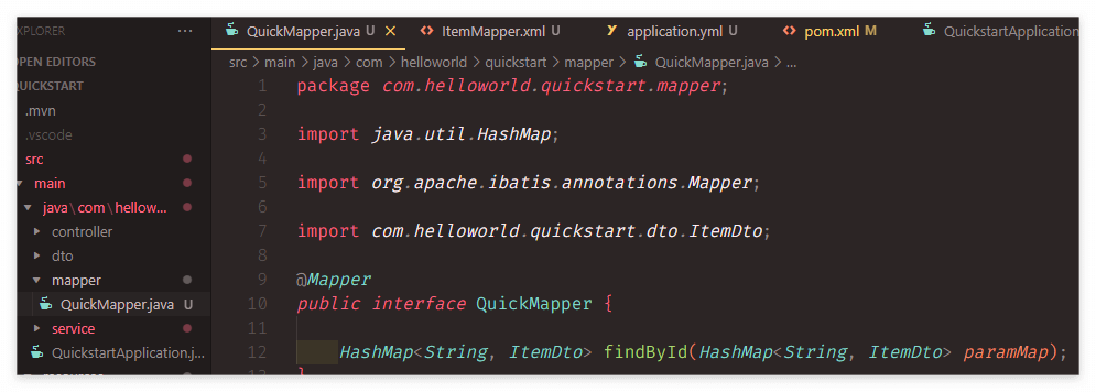 - java๋จ์ mapperํจํค์ง ์์ mapper ์ธํฐํ์ด์ค๋ฅผ ๋ง๋ค์ด ๋ฉ์๋ ์ ์ธ๋ถ๋ง ์ ์ด์ค๋ค.
