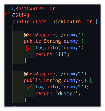 - ์ปจํธ๋กค๋ฌ์ @Slf4j ๋ฅผ ์ถ๊ฐํ๊ณ log๋ฅผ ์ถ๊ฐํ๋ค.