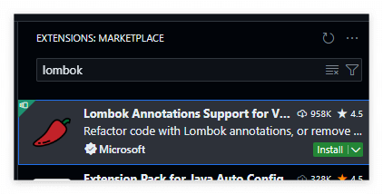 - EXTENSION ์ lombok ์ ์ถ๊ฐํ๋ค.