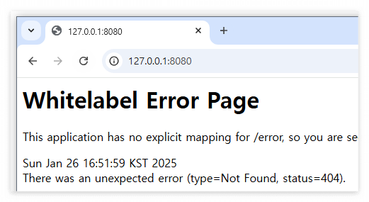 - ๋ค์ ํ๋ก์ ํธ๋ฅผ ์คํํด๋ณด๋ฉด Tomcat ๋ฑ์ด ์ค์น ๋๊ณ http://127.0.0.1:8080/ ๋ก ๋ค์ด๊ฐ๋ณด๋ฉด ๊ธฐ๋ณธํ์ด์ง๊ฐ ์์ฑ๋๋ค.