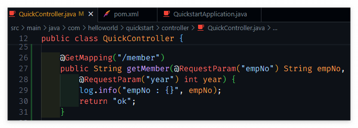 - QuickController์ get๋ฉ์๋๋ฅผ ๋๊ฐ ์ถ๊ฐํ๋ค.