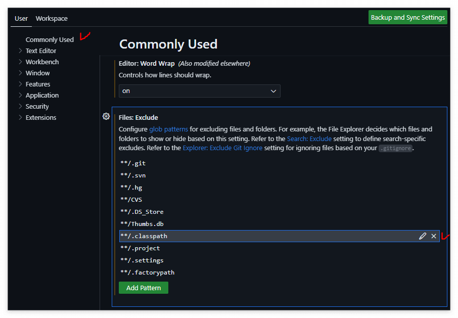 - Commonly Used의 Files: Exclude 에서 classpath를 X 버튼 눌러 제외 시킨다.